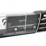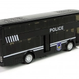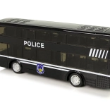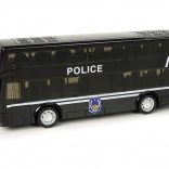 Autobuzul polițienesc etajat, de culoare neagră, pentru copii, oferă mecanism cu fricțiune (pull-back), efecte luminoase și sonore și un interior realizat cu atenție la detalii. Datorită anvelopelor din cauciuc, deplasarea este lină, iar inscripțiile POLICE cu embleme îi conferă un aspect atrăgător. Jucărie ideală pentru dezvoltarea coordonării și imaginației și un cadou grozav într-o cutie cadou transparentă.