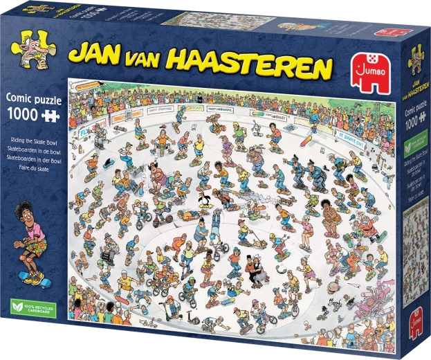 Descoperă gag după gag în lumea originală a lui Jan van Haasteren. Stilul său inconfundabil aduce culori vii, o mulțime de personaje și situații haotice simpatice, care te vor distra de fiecare dată când îl refaci. În imagine nu lipsesc „semnăturile” tipice ale autorului – înotătoarea rechinului, „mâinile rătăcitoare”, proteza dentară, Moș Nicolae sau chiar autoportretul autorului.