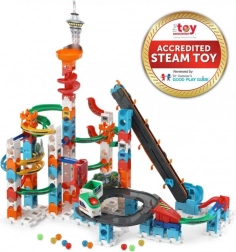 Pachetul conține 143 de piese, 10 bile, trenuleț electric cu vagon, lift electric, autocolante colorate și un manual color detaliat în limba cehă. Pista poate fi conectată cu alte seturi, astfel încât distracția nu se termină niciodată.