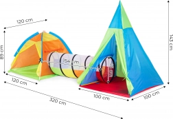 Setul include un tunel, care servește la conectarea corturilor. Va fi o cale între adăposturi și le va oferi copiilor multă distracție la târât.