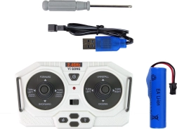 - Excavator, telecomandă, baterie 3,7 V 500 mAh, încărcător USB, șurubelniță, manual