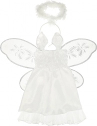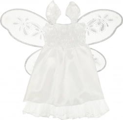 Costumul este completat cu aripi brodate cu finisaj sclipitor, care oferă un aspect angelic.