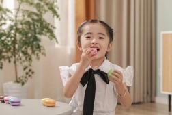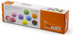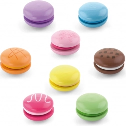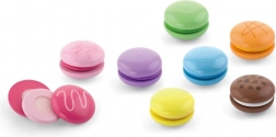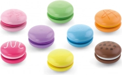 Setul conține 8 macarons realizate realist, în culori pastelate delicate. Fiecare macaron este alcătuit din două părți unite cu bandă cu arici, astfel încât copiii le pot „despărți” și reasambla ușor – exersând priza, coordonarea mână–ochi și descoperind combinații de culori.