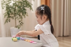 Macarons sunt fabricate din lemn de calitate și vopsite cu culori netoxice. Marginile netede și robustețea materialului sunt ideale pentru cei mici.