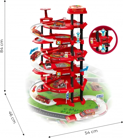 Garaj XXL pentru pompieri - 5 niveluri + covoraș de joacă, 82 piese