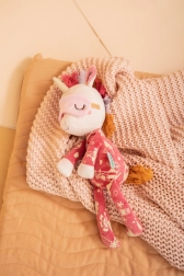 Drăgălașa jucărie de pluș pentru pătuț Unicornul Lena de la Lilliputiens îi ajută pe cei mici să adoarmă liniștiți. Are pijama fosforescentă și mască de somn, care susțin ritualul de seară. După o scurtă expunere la lumină, emană o lumină delicată și liniștitoare, este foarte moale și plăcută la atingere. Poate fi spălată la 30 °C pe ciclu delicat.