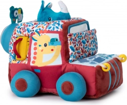 Această mașinuță de activități catifelată, cu leul Jack și rinocerul Marius, este partenerul ideal pentru micii exploratori. Oferă numeroși stimuli: culori contrastante, materiale variate pentru atins, o oglindă sigură și elemente amuzante care îi motivează pe copii să prindă, să strângă și să împingă.