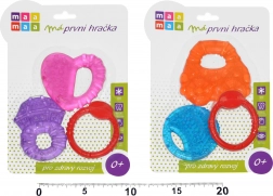 Setul de inele gingivale răcitoare este conceput pentru a oferi alinare copiilor în timpul apariției primilor dinți. După răcirea în frigider (aprox. 1 oră), frigul ajută la reducerea congestiei gingivale și la prevenirea inflamațiilor, în timp ce textura variată a suprafeței masează gingiile și susține mușcarea naturală. Datorită construcției ușoare și materialului plăcut, inelele se țin ușor chiar și de cele mai mici mânuțe.
