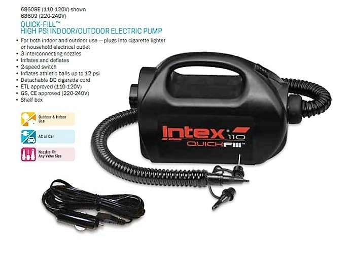 Pompa electrică universală Intex Quick-Fill accelerează pregătirea saltelelor, piscinelor, bărcilor și a altor produse gonflabile. Alimentarea duală 12 V/230 V îți permite să folosești pompa atât acasă, cât și în mașină, în vacanță sau la camping. Corpul compact cu mâner practic și furtunul flexibil facilitează manevrarea.