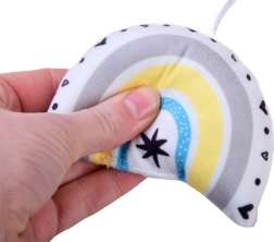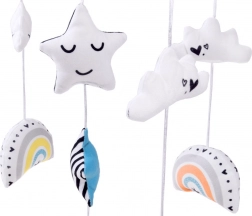 Acest carusel nu oferă doar stimulare vizuală, ci și acustică datorită melodiei pe care o redă când se rotește 360 de grade. Are un comutator ON/OFF practic pentru o utilizare ușoară. Fabricat din plastic de calitate, decorurile de pluș pot fi îndepărtate și spălate, facilitând întreținerea lor.