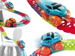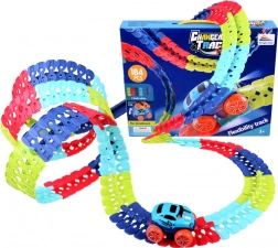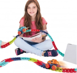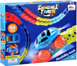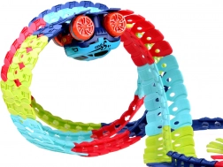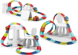 Pista compusă din 184 de piese interconectabile permite îndoirea liberă, crearea de bucle și curbe dinamice. La mijloc există o șină de ghidare pentru rulare stabilă.