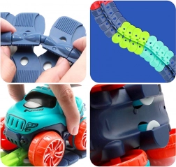Această pistă colorată din plastic rezistent este formată din 184 de segmente interconectabile, care pot fi îndoite și reconfigurate liber. Creează o rută dinamică plină de curbe, bucle și diferențe de nivel – șina de ghidare din mijlocul pistei ajută la menținerea mașinuței în siguranță pe traseu. După introducerea a 3× AAA (nu sunt incluse), mașinuța pornește înainte printr-o singură apăsare de buton și luminează cu roșu și verde în timpul mersului.
