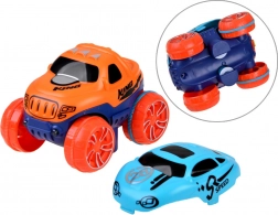 După introducerea a 3× AAA, mașinuța pornește prin buton și în timpul mersului luminează verde în față și roșu în spate. Roțile din spate cu benzi din cauciuc îmbunătățesc aderența.