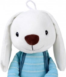 Această jucărie de pluș catifelată va bucura orice copil. Iepurașul este îmbrăcat în pantaloni cu bretele și un tricou în dungi cu mânecă lungă, având un aspect prietenos și sigur. Datorită materialului de calitate și plăcut, este ideal atât pentru îmbrățișat, cât și pentru joaca de zi cu zi.