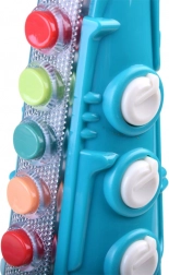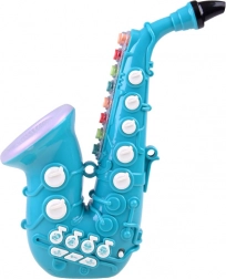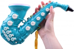 Acest saxofon colorat pentru copii dezvoltă simțul ritmului, percepția muzicală și motricitatea. La pornire, copilul este întâmpinat de o melodie veselă și de elemente iluminate. Poate asculta piese prestabilite sau își poate crea propriile – suflând în muștiuc și apăsând clapele ca pe un instrument adevărat.