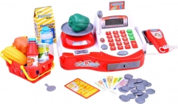 - Casă de marcat cu calculator, scanner, cântar și microfon; coș; monede și bancnote euro; card de plată; imitații de alimente (pui, porumb, ardei, apă, ketchup, lapte)