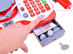 Această casă de marcat pentru copii oferă tot ce are nevoie un mic vânzător: calculator funcțional pentru calcule de bază, scanner cu lumină și sunet, cântar pentru produse și microfon pentru anunțuri. Sertarul pentru bani se deschide cu butonul „open” și poate fi încuiat. Datorită accesoriilor bogate, copiii pot imita cu ușurință cumpărăturile reale.