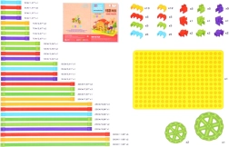 - bețișoare din spumă (lungimi diferite), rotițe din plastic, conectori din plastic, bază din spumă, ghid ilustrat