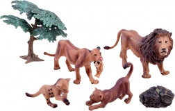 Creați-vă propriul safari cu figurine realiste ale unei familii de lei. Acest set include un leu, o leoaică, doi pui de leu și accesorii (un copăcel și o piatră), datorită cărora copiii pot pregăti cu ușurință scene din savana africană. Fiecare figurină este turnată cu grijă și finisată manual pentru autenticitate maximă și durată de viață îndelungată.