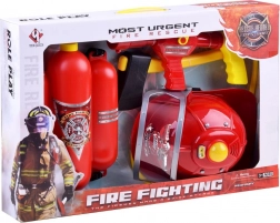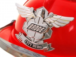 Cască roșie pentru copii cu vizieră transparentă completează aspectul de pompier și, datorită efectelor de lumină și sunet, adaugă realism jocului. Circumferință ajustabilă pentru purtare confortabilă.