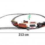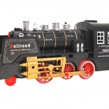 Setul este fabricat cu grijă până la cel mai mic detaliu, locomotiva este propulsată ca o clasică locomotivă cu abur, cu efect de fum în timpul mersului. În plus, locomotiva noastră emite un semnal sonor de avertizare în partea frontală, iar când rezervorul este umplut cu apă, începe să iasă fum din coș, așa cum se cuvine unei vechi locomotive cu abur. De asemenea, în timpul mersului se aud sunetele tipice trenurilor: fluier, zgomotul roților pe șine, clinchetul clopoțelului etc. Acest model impresionant de cale ferată cu vagoane va fi cu siguranță pe placul oricărui începător pasionat de modelism feroviar.
