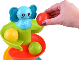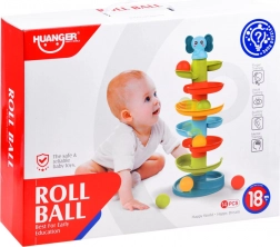 Pista distractivă cu bile și elefănțel oferă copiilor ore întregi de joacă și dezvoltare a abilităților. Turnul spiral înalt cu șase niveluri și drăgălașul elefănțel de sus susține motricitatea fină, coordonarea mână–ochi și percepția senzorială. Lansați bilele colorate din vârf și urmăriți-le cum se rostogolesc pe rampele curbe până jos, însoțite de un clinchet vesel. Construcția durabilă din plastic de calitate și formele rotunjite, sigure, sunt ideale pentru cei mai mici.
