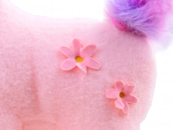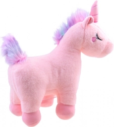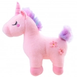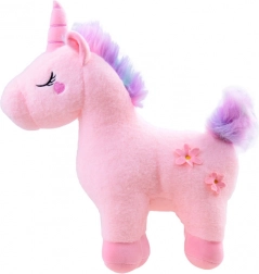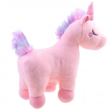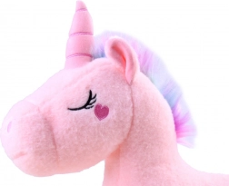 Roz pastel, coama în culori de curcubeu și cornul roz moale cuceresc din prima și stimulează imaginația copiilor.