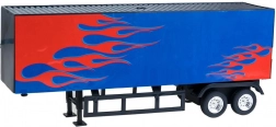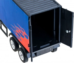 O jucărie grozavă pentru toți micii pasionați de auto care visează să conducă un cap tractor american. Acest camion cu semiremorcă cu telecomandă, în culorile albastru și roșu cu detalii de flăcări, oferă nu doar un aspect estetic, ci și funcționalități practice. Fabricat din plastic, ceea ce garantează durabilitate și manipulare ușoară. Include semiremorcă detașabilă și uși care se deschid pentru încărcarea mărfii, sporind realismul jocului.