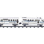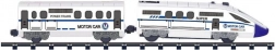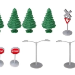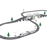 Setul include o locomotivă și șine cu o lungime totală de 366 cm, care permit crearea diferitelor trasee după imaginație.
