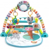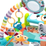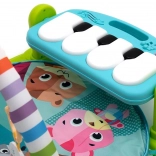 Saltea de joacă colorată pentru copii, cu pian și proiector, crește odată cu bebelușul și îi susține dezvoltarea încă de la naștere. Oferă poziții pentru stat pe spate și pe burtică, ședere și joacă independentă. Include jucării agățate cu oglindă sigură, pian interactiv cu melodii și efecte luminoase și reglaj al volumului pe două trepte. Susține dezvoltarea senzorială, motricitatea și coordonarea.