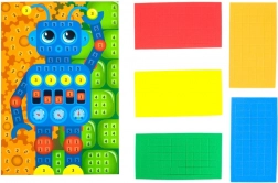 Acest set simplu și colorat îi va încânta pe toți micii creatori. Pe un suport de carton se lipesc piese autoadezive din spumă după șablon sau după propria imaginație, astfel încât copilul realizează cu ușurință o imagine frumoasă fără mizerie și fără nevoie de lipici sau foarfecă.