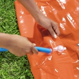 Instalare rapidă și ușoară. Este suficient să desfășurați toboganul pe gazon și să conectați un furtun. Ancorajele speciale asigură rămânerea fermă a toboganului pe loc.