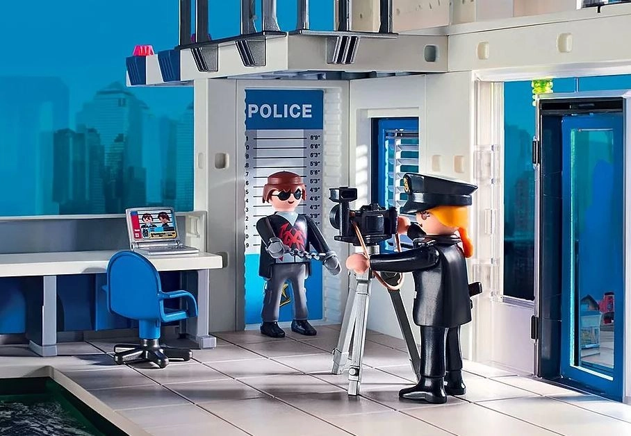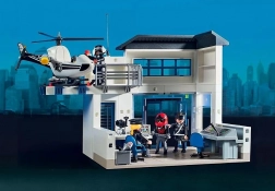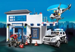 În centrul de comandă al marii stații de poliție a fost recepționat un apel de urgență. Tâlharul căutat fuge pe un ATV! Poarta mare a stației este deja deschisă și urmărirea cu sirene începe. De îndată ce suspectul este prins, i se iau amprentele și criminalul este identificat. Totuși, deținutul reușește să evadeze din cele două celule printr-o gaură în perete. Stația de poliție are spațiu pentru o mașină de poliție (nu este inclusă în set) și pe acoperișul ei se află o platformă de aterizare pentru elicopter.