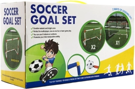 Setul mai include o minge de fotbal și o pompă, astfel încât orice alt echipament este gata și poate începe meciul.
