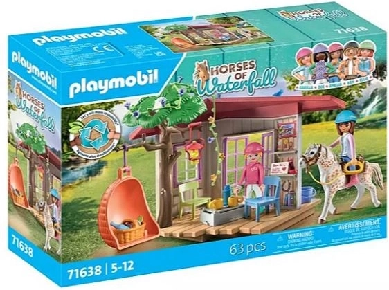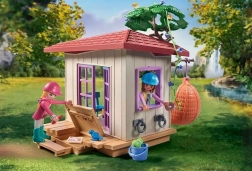 Îmbarcați-vă într-o aventură ecvestră cu misteriosul Clubul iubitorilor de cai PLAYMOBIL! În spatele unei mici cascade, în inima pădurii, grupul de prieteni călăreți Waterfall a construit o frumoasă căsuță de club cu un leagăn confortabil și o ascunzătoare practică! Locul ideal pentru a te relaxa după un lung traseu călare sau pentru întâlniri secrete ale membrilor clubului. Isabella și Amelia aduc întotdeauna o cană de ciocolată caldă și covrigei delicioși. Calul prietenos ascultă chicotelile grupului de prieteni și cântecul păsărilor.