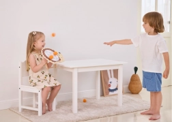 Această jucărie din lemn este concepută pentru copii de la 3 ani și oferă distracție excelentă prin aruncarea țintită a mingilor către țintă. Astfel, copiii își pot îmbunătăți abilitățile de țintire. În plus, jucăria este ușor de asamblat și dezasamblat, ceea ce ușurează portabilitatea și întreținerea sa.