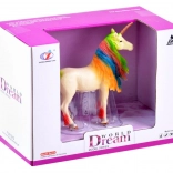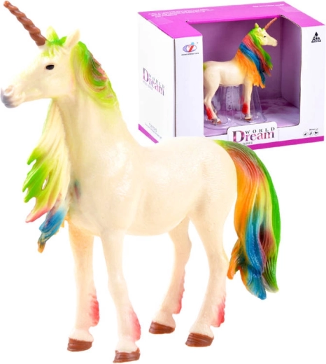 Figurina încântătoare de unicorn cu coamă și coadă în culorile curcubeului luminează camera copiilor și orice colecție. Fabricată din plastic de calitate, are culori vii și un corn magic care stimulează imaginația și jocul creativ.