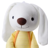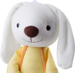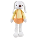 Suprafața textilă moale și umplutura ușoară fac din iepuraș jucăria ideală pentru alintat. Certificările CE și EN 71 asigură o utilizare în siguranță.