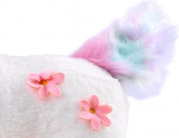 Cornișorul roz, coama curcubeu și floricelele de pe lateral oferă jucăriei un aspect magic și stimulează imaginația.