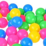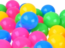 Acest set conține 100 de bile colorate, perfecte pentru spațiile de joacă ale copiilor. Bilele au un diametru de 6,5 cm și sunt disponibile în patru culori strălucitoare: roz, galben, verde și albastru, asigurându-și atractivitatea pentru copii și încurajându-le distracția.