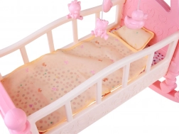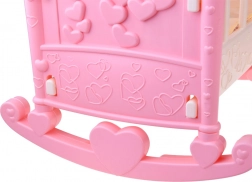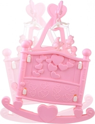 Acest leagăn din plastic este ideal pentru păpuși sau plușuri de până la 42 cm. Decorat cu inimioare și un mic carusel, oferă copiilor bucuria de a avea grijă de jucăriile lor și, în același timp, susține creativitatea și imaginația lor.