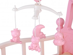 Caruselul elegant de pe leagăn aduce bucurie și susține dezvoltarea imaginației copiilor.