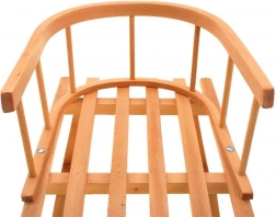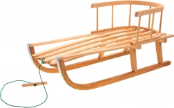 Săniuțele sunt echipate cu un spătar pentru o ședere sigură și au o sforică cu mâner din lemn, ceea ce permite o tragere ușoară.