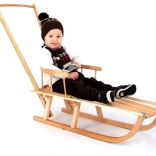 Săniuțele noastre sunt ideale pentru joaca de iarnă. Fabricate complet din lemn lăcuit, oferă un scaun confortabil și sigur cu spătar pentru copil. Șinele metalice robuste contribuie la stabilitatea lor și alunecarea ușoară pe zăpadă.