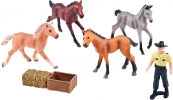 În pachet găsești o figurină de fermier, patru mânji drăgălași, elemente de țarc, jgheab și un balot de fân – tot ce trebuie pentru a crea o scenă completă de fermă. Ideal ca cadou de ziua de naștere sau alte ocazii, care încurajează creativitatea, jocul de rol și cunoștințele despre viața la țară.