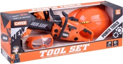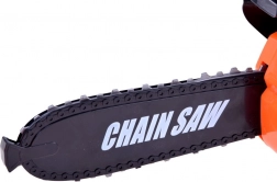 - Fierăstrău din plastic cu sunet realist - după introducerea bateriilor și apăsarea unui mic buton lateral, fierăstrăul pornește și emite un sunet realist de lanț.