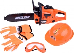 Set distractiv și sigur pentru copii micul tăietor de lemne este perfect pentru micii ajutători la treburile grădinii. Setul include un fierăstrău din plastic realist, ochelari de protecție, cască și mănuși, care garantează un joc sigur și distractiv.