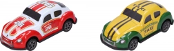 Mașinuțe de curse mici, dar rapide, pentru mari competiții în camera copiilor! În set găsești 4 mașinuțe metalice cu lungimea de 7 cm, cu mecanism pull-back pentru o rulare sprintenă. Distracție ideală pentru micii piloți de la 3 ani.