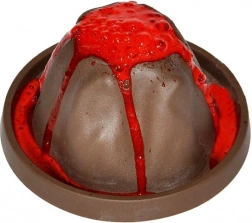 Întregul experiment începe cu punerea ochelarilor de protecție. Pentru a provoca erupția, măsurați cu lingura o cantitate potrivită de ingrediente pe care le puneți în vulcan. Folosind mixerul, amestecați totul temeinic. Turnați apă în pahar, pe care o veți adăuga la pulbere folosind seringa, ceea ce va provoca o erupție spectaculoasă.