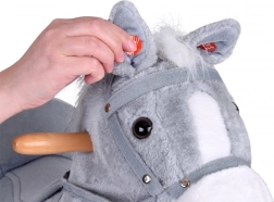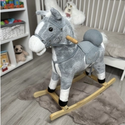 Designul elegant în gri-alb și plușul catifelat transformă calul balansoar într-un accesoriu frumos pentru camera copilului și o jucărie preferată pentru fiecare zi. Tălpile robuste din lemn asigură o mișcare lină și stabilă, în timp ce mânerele și scărițele îi ajută pe copii să își mențină echilibrul. Șeaua confortabilă invită la legănări îndelungate și aventuri imaginare.